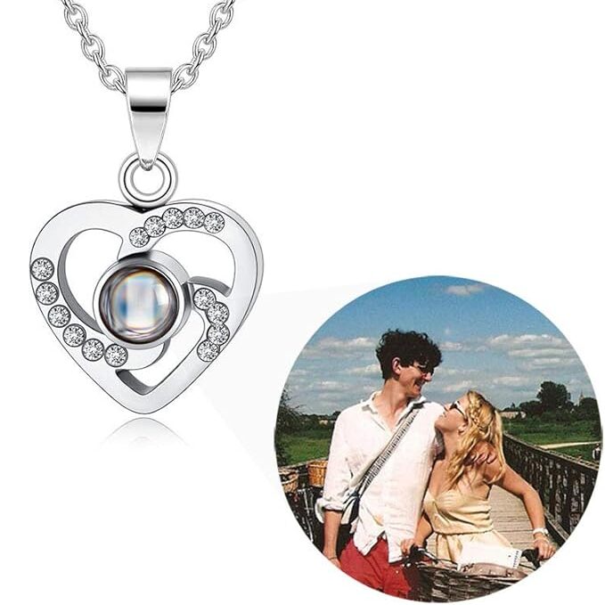Colar de projeção de imagem personalizada para mulheres – pingente de coração de amor com foto personalizada – Joias de retrato personalizadas – Presentes de aniversário de aniversário para ela, F