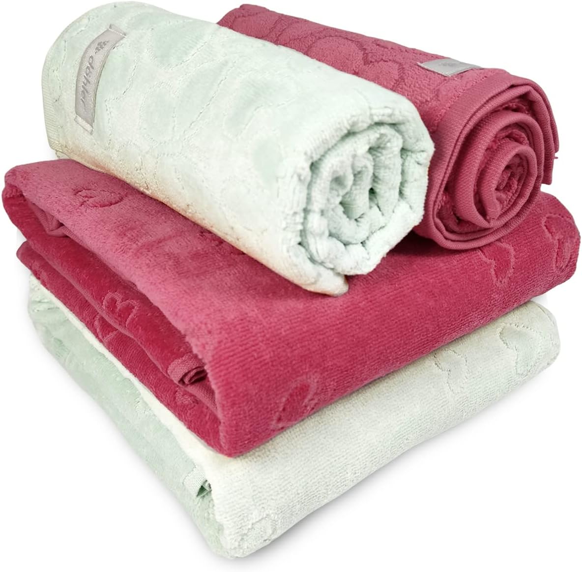 Jogo de Banho 4 Peças Romance Dohler Aveludada 100% Algodão Toalha Fio Penteado Coração Borboleta (Verde/Rosa 10366)