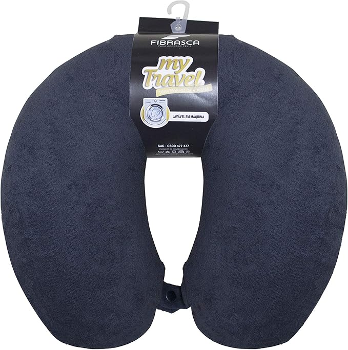 Travesseiro de Viagem My Travel – Fibra Siliconizada – Preto – Fibrasca, Formato “U” anatomico cervical